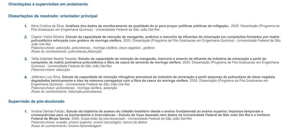 Engenheira Química/UFU , Pós doc Engenharia de Materiais/UFOP